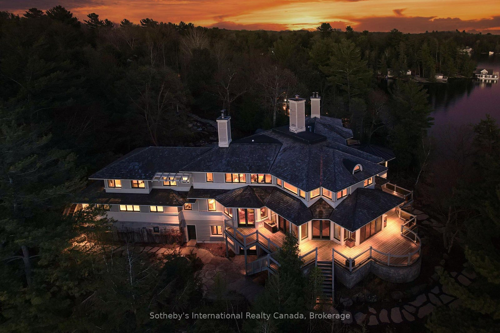 SUNSET POINT LAKE MUSKOKA - Presenting the most Iconic Muskoka Estate, embodying unparalleled luxury and prestige on the shores of Lake Muskoka. This 1.5 acre west facing point offers 689 feet of lakefront. Meticulously crafted for discerning families, this bespoke Muskoka compound delivers a distinctive residence providing privacy, views, location, architecture, and amenities. Ideally positioned at the cape of the peninsula, an elegant 7-bedroom, 8-bathroom manor with a magnificent lakeside position awaits