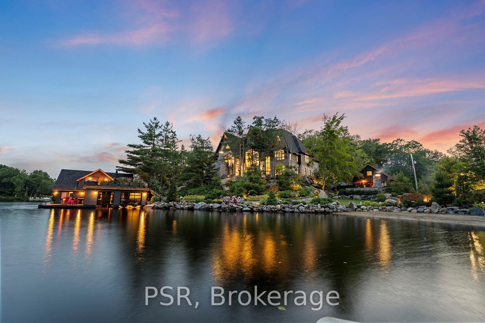 Discover the pinnacle of Muskoka living in this ultra-luxury estate, positioned on 2.83 acres boasting 270 feet of immaculate Lake Muskoka shoreline with an additional 420 ft of waterfront on the North side. This compound offers an extraordinary main residence, 4 slip boathouse w/ living quarters, refined bunkie and every high-end feature imaginable all fully furnished with brand-new, designer-selected pieces. The main level great room impresses with soaring 18-ft vaulted ceilings, a dramatic stone accent wall w/ fireplace, & striking hardwood beam accents. The chefs kitchen is a masterpiece, featuring an 11-foot island, premium appliances, walk-in pantry, hidden in-cabinet fridge, bar fridge & ice maker. The upper level primary suite showcases stunning lake views with soaring ceilings, a spa-inspired bathroom w/in-floor heating and an expansive 200 sq ft W/I closet. The lower level is designed for entertaining, featuring 10ft ceilings, full bar, wine cellar, gym, billiards room and walkout to the lake. This exceptional property also includes a four-season, 2 bed + loft bunkie with its own stone patio, outdoor fireplace, and 6 person hot tub perfect for guests. The 4-season boathouse boasts 4 boat slips with 3 hydraulic lifts, 2 Sea-Doo lifts, & an impeccably finished 1 bedroom suite w/ kitchen & bath above. The rooftop boathouse deck is a true entertainers paradise with a bar, pizza oven, and TV on a elevator lift. Additional highlights include a professional 6-hole putting green, 3 car garage with in-floor heating, flag stone steps leading to the water, paved parking for up to 20 vehicles, a motor coach pad with hookups, and meticulously landscaped grounds with irrigation and over 100 exterior lights. This rare and magnificent estate represents the essence of Muskoka luxury living an incomparable retreat in South Lake Muskoka, a shorter drive to the city, where every detail has been thoughtfully designed for elegance, comfort & year-round enjoyment.
