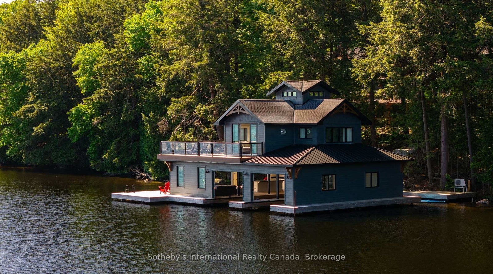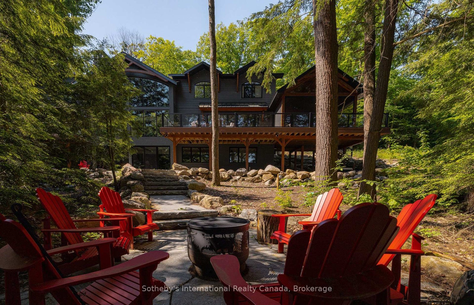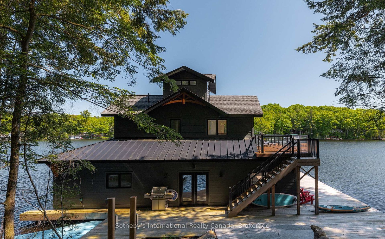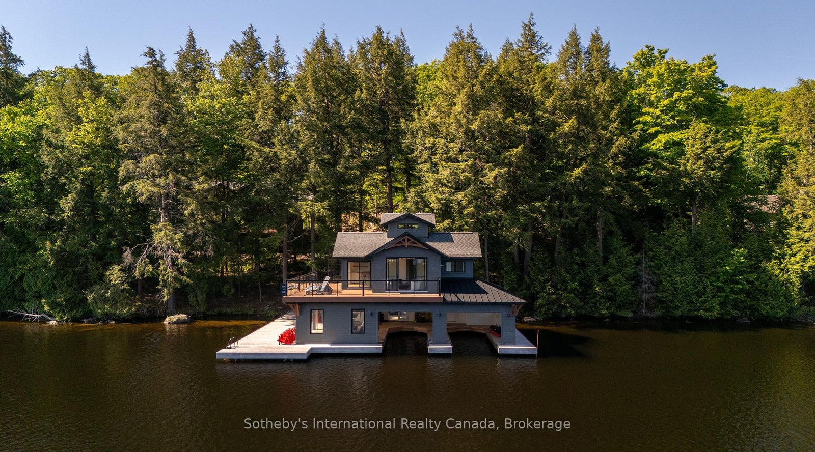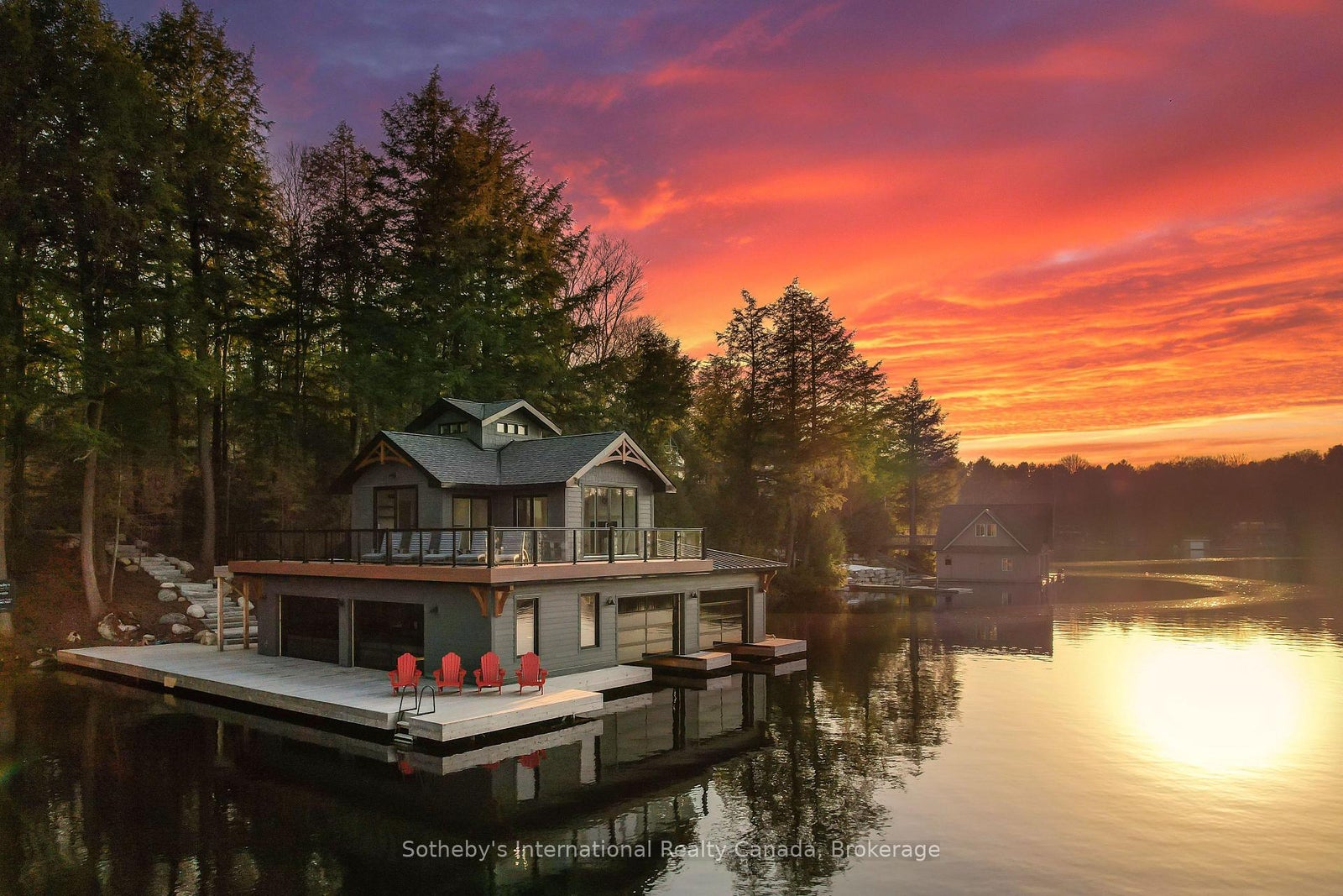 Discover this stunning 7,500 sq.ft luxury build, nestled on 4.8 acres of beautifully landscaped privacy with 306 feet of Lake Muskoka frontage. Designed and masterfully built by Cottage Country Builders with interiors by Hilltop Interiors, this 7+2 bedroom, 7-bathroom estate offers an exceptional blend of craftsmanship and comfort. Enter through a dramatic granite rock cut to your private lakeside retreat. Take in sunsets and long lake views year-round from the matching two-storey boathouse crowned with a signature cupola. A natural sandy walk-in and deep-water access complete the shoreline. Flagstone paths connect the cottage to an inviting fire pit and spa. Inside, a full-height granite fireplace anchors the great room with soaring windows. The kitchen features Sub-Zero and Wolf appliances, a built-in coffee bar, and elegant countertops. The adjacent dining area includes bi-fold lakeside doors and deployable screens. Relax on the expansive deck or in the Muskoka room with a gas fireplace and automatic screens. The main floor primary suite includes a spa-like ensuite and serene lake views. Upstairs, discover another primary, multiple guest suites, and a private study. The lower level lounge features walkouts to the patio and spa, a pool table, quartz wet bar, romantic wine cellar, and opulent home theatre. Whole-home automation and a 20-zone sound system create an ideal environment for entertaining. A 2-car attached garage provides year-round comfort. With permits in place and site prep complete, there's room to build your dream garage or sports court. This is a rare opportunity to own a new build of this calibre on Lake Muskoka.