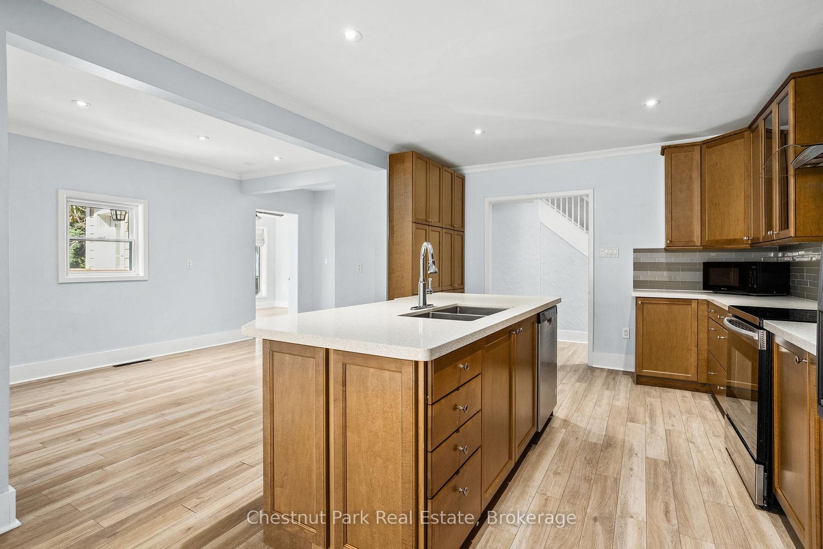 A landmark opportunity in the heart of Muskoka - 615 Bay Street seamlessly blends timeless character with exceptional versatility. This beautifully maintained century home offers 3 bedrooms and 2.5 bathrooms, filled with warmth, charm, and comfortable living spaces. Adding to its appeal is the rare advantage of C1-B commercial zoning, opening the door to a wide range of residential, professional, or mixed-use possibilities. The flexible layout features bright principal rooms, high ceilings and an inviting sense of scale-ideal for family living, a professional workspace, or a thoughtfully designed live/work setup. With impressive street presence and access from both Bay Street and Hughson Street, this property stands out as both a distinctive residence and a highly visible business location. Perfectly positioned within walking distance of the Gravenhurst Wharf, boutique shops, restaurants, and the vibrant downtown core, this location benefits from excellent accessibility and consistent local and seasonal traffic. Just under two hours from the Greater Toronto Area, it offers an ideal balance of Muskoka lifestyle and urban convenience-perfect for visitors, clients, or professionals seeking a weekend escape or permanent base. Whether envisioned as a bed and breakfast, boutique storefront, café, professional office, or another inspired business concept, the zoning supports a broad range of uses. This is a rare opportunity to own a piece of Gravenhurst history.