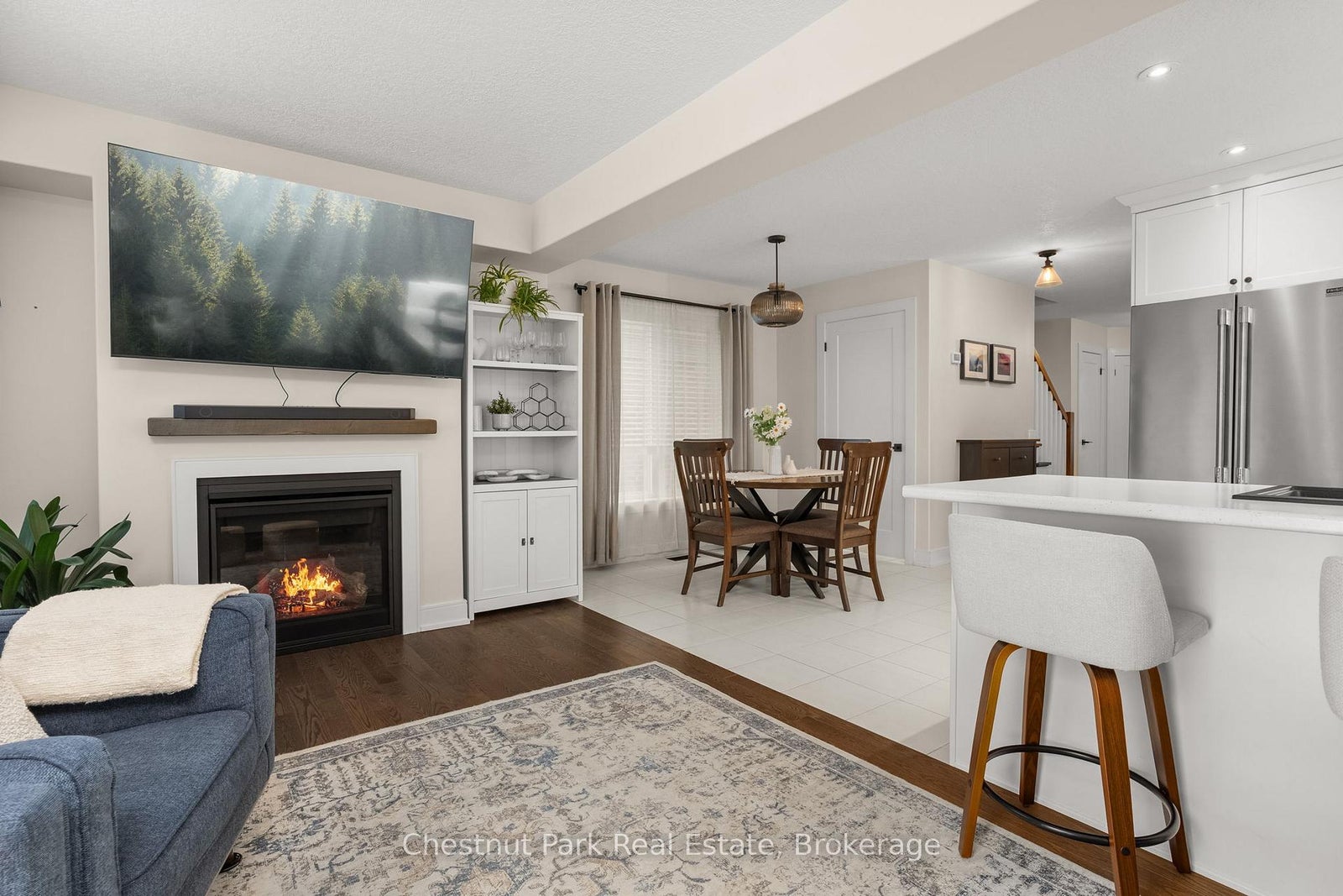 Welcome to 29 Kelsey Madison Court, an upgraded end-unit townhome tucked into one of Huntsville's quiet and sought-after neighbourhoods. Backing onto iconic Muskoka rock and mature forest, this property offers a rare sense of privacy and a beautiful natural backdrop right in your own backyard. Inside, the main living space feels warm and inviting, anchored by a cozy gas fireplace that creates the perfect setting for relaxing or entertaining. The thoughtful layout flows seamlessly through the principal rooms, while the added windows of this end unit fill the home with natural light. Upstairs, the spacious primary bedroom features its own private ensuite, while two additional bedrooms offer flexible space for family, guests, or a home office. The finished basement extends the living space even further, complete with a third full bathroom and a dedicated laundry room-ideal for a recreation room, guest suite, or additional family living area. The attached garage provides convenient interior access, along with direct access to the backyard for added everyday functionality. Step outside to enjoy the newly fenced backyard (2025), a private outdoor retreat where you can unwind and take in the beauty of the surrounding Muskoka landscape. Fully serviced with natural gas, municipal water and sewer, and high-speed internet, this home offers the comfort of modern connections while being surrounded by nature. Located just minutes from downtown Huntsville, you'll enjoy quick access to shops, restaurants, schools, the hospital, and Highway 11-making commuting and daily errands effortless while still enjoying the peace of a residential neighbourhood. Don't miss the opportunity to make this beautiful townhome the backdrop for your next chapter.